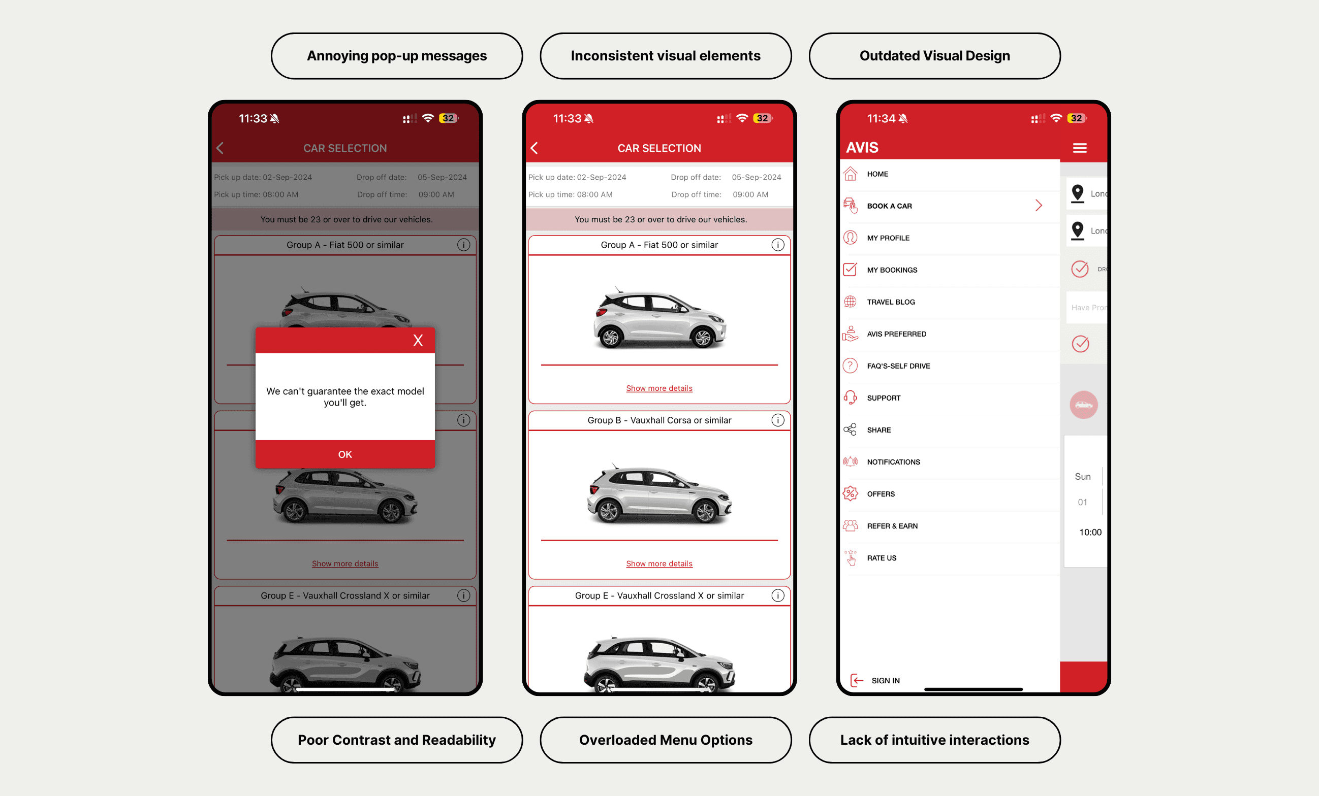 Avis App's Interface redesign to address UX challenges