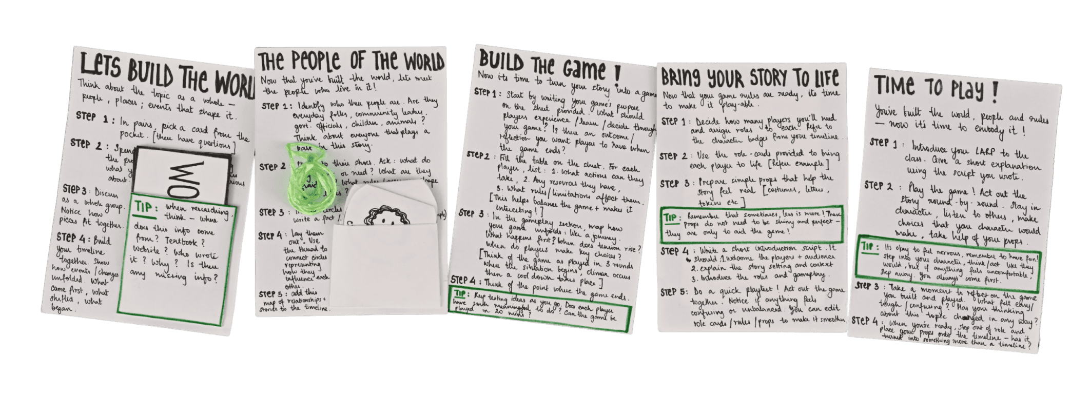 So to pilot the viability of this recommendation early on, we built a paper prototype of a guide that enables participants to design and perform their own LARP.