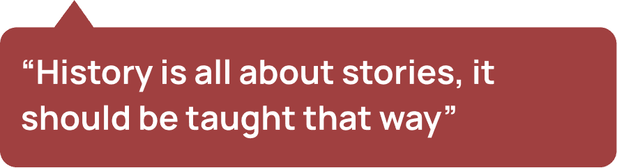 By this point in the process, we were strongly considering designing a new learning system- one that gets students genuinely excited about history, while still sitting snugly within the ecosystem of their classrooms.