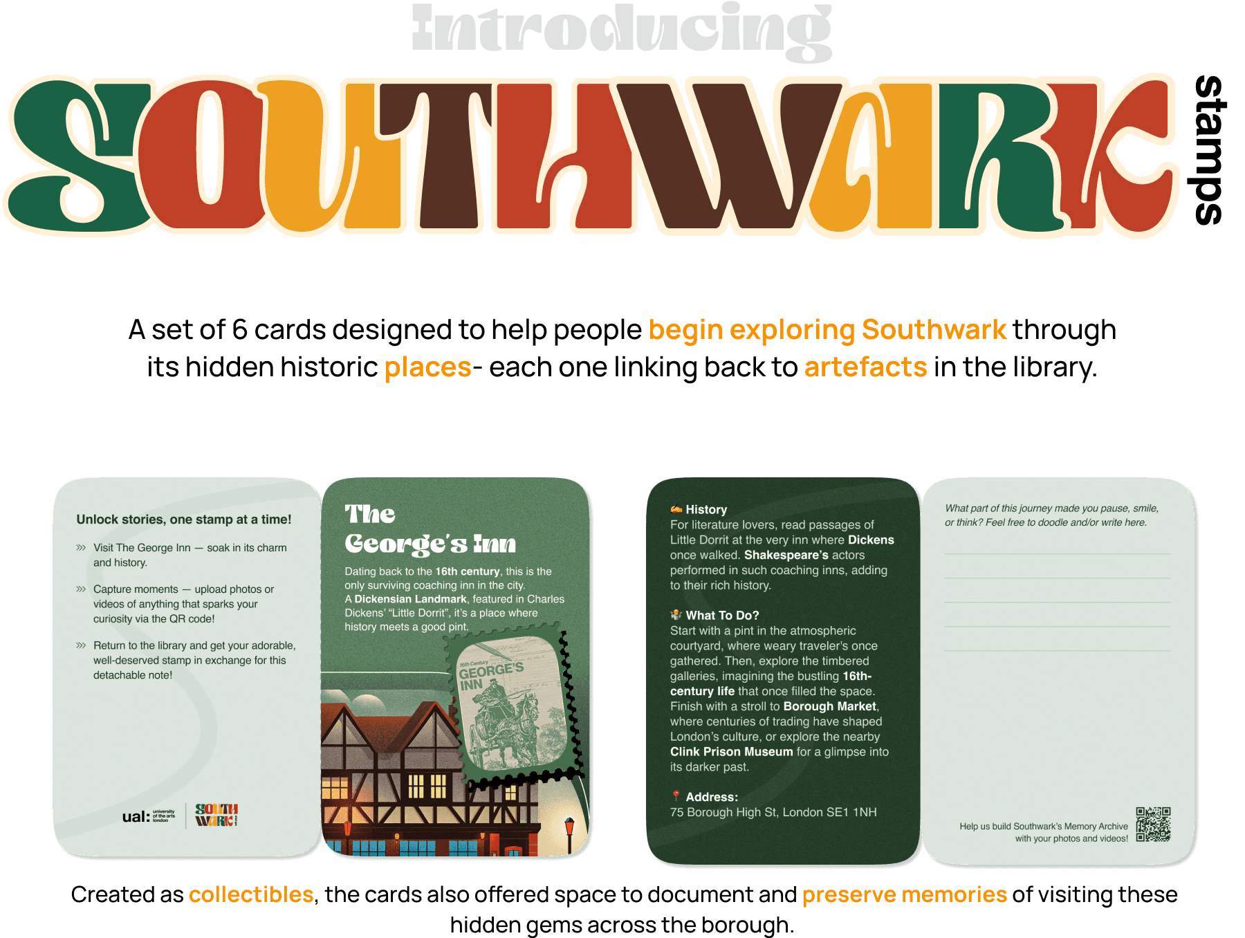 Design a local memory preservation and information sharing system inspired by and integrated with Southwark Heritage Centre & Walworth Library. This project turned to be a journey into place-making, storytelling, and sense of belonging.